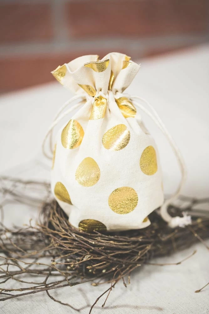 Our new favorite favors! Use these gorgeous linen bags with metallic polka dot accents to make your favors pop! Fill with candle holders or sweet treats to give your guests something to remember. Available in gold & silver, these favor bags will add something special.