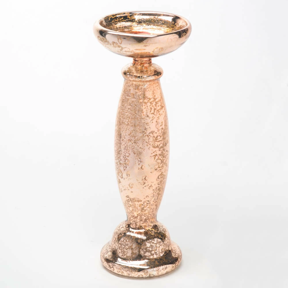 Richland 11.25” Unique Rose Gold Mercury Glass Pillar Candle Holder