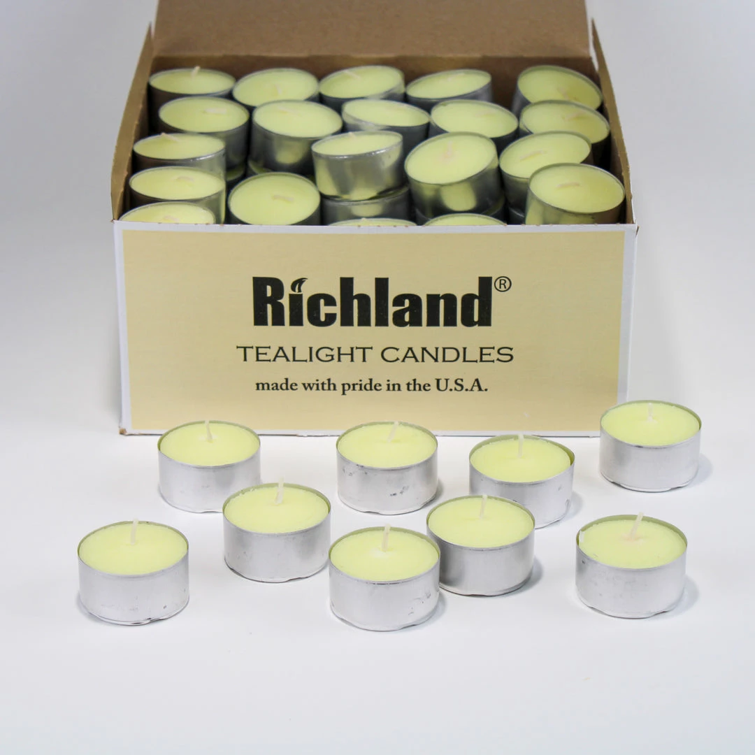 We also offer Unscented Tealights in Clear Cups and Scented Tealights in Clear Cups. These are set in clear plastic cups, and are great for uses where the Tealight Candle will be visible. Be sure to check them out!