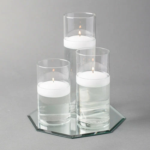 Eastland Octagon Mirror and Cylinder Vase Centerpiece with Richland 3″ Floating Candles Set of 7