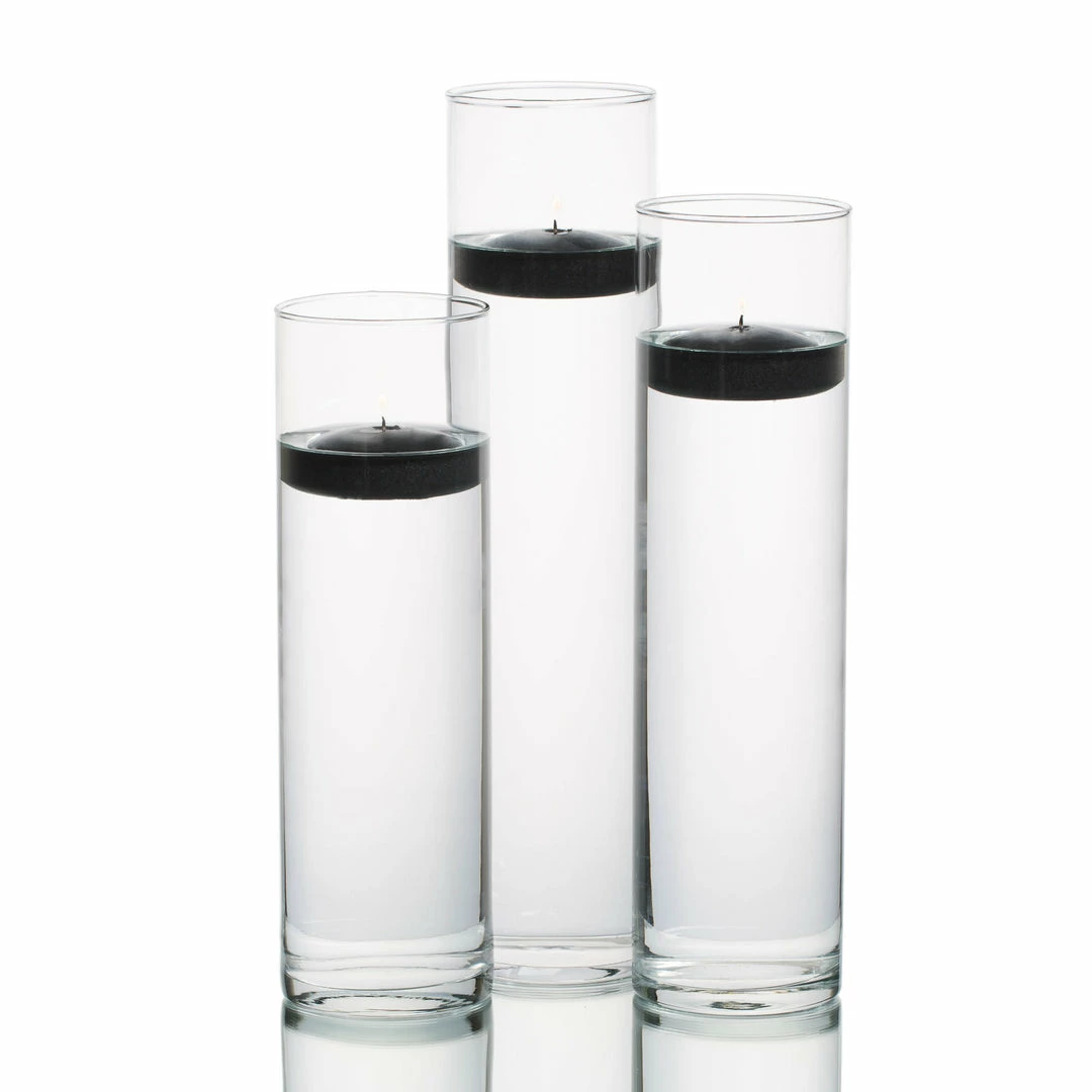 This fabulous set of (18) total Tall Cylinder Vases and (18) total 3″ Floating Candles will have your centerpieces ready-to-go! Our elegant, crystal clear Tall Cylinder Vases make a dramatic presentation to any event space; and take the guessing out of decorating!