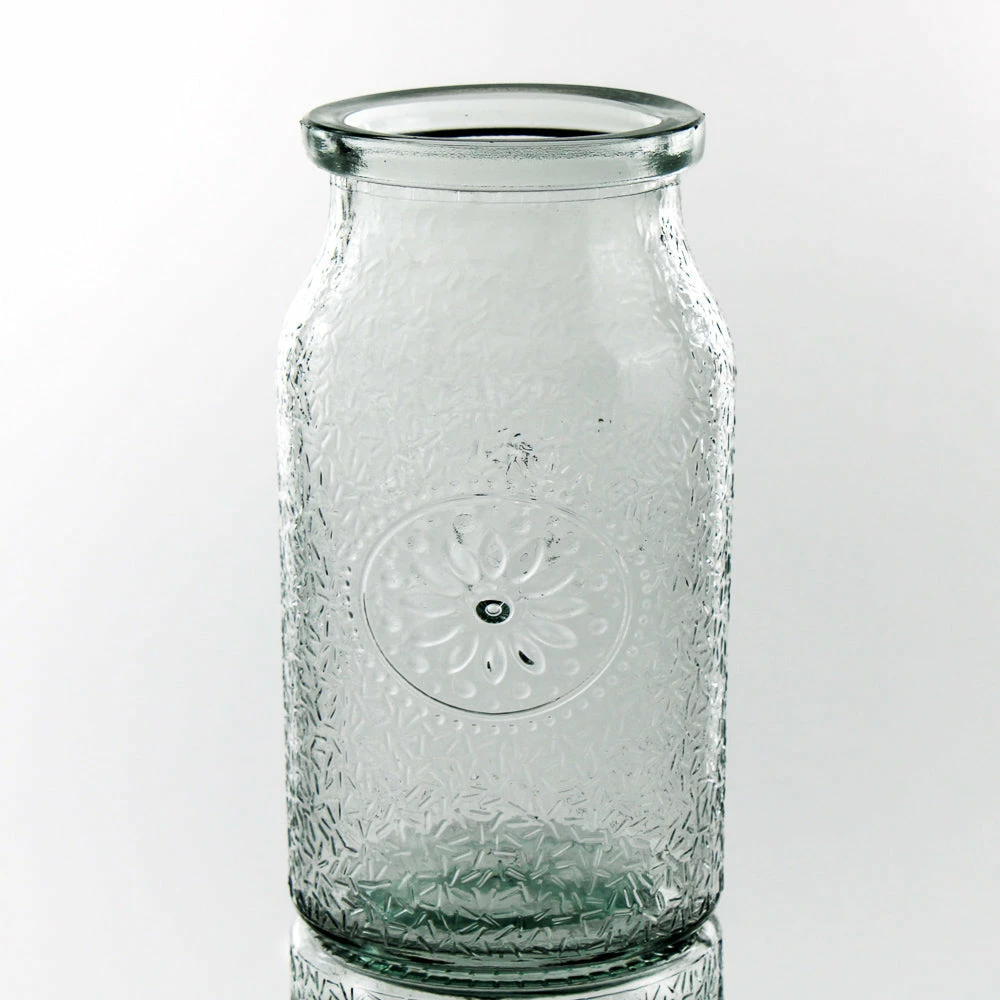 A fresh take on the classic milk jug style, our new Richland Hickory Farmhouse Jar is perfect for adding interest to any setting. This vintage-inspired glass jar with raised texture design, tapered neck, and thick rim is the perfect vessel for your favorite fresh flowers. Incorporate this charming vase into centerpieces at your special event for a dainty touch; or use as an accent to a bookshelf or office to add gorgeous farmhouse flair. Perfect for weddings, showers, garden parties, or home décor!