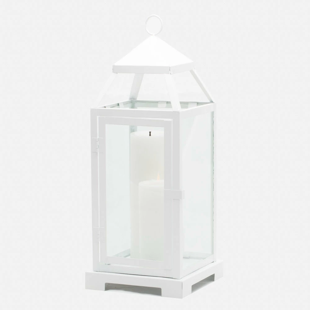 Richland White Contemporary Metal Lantern with Clear Glasses – Large