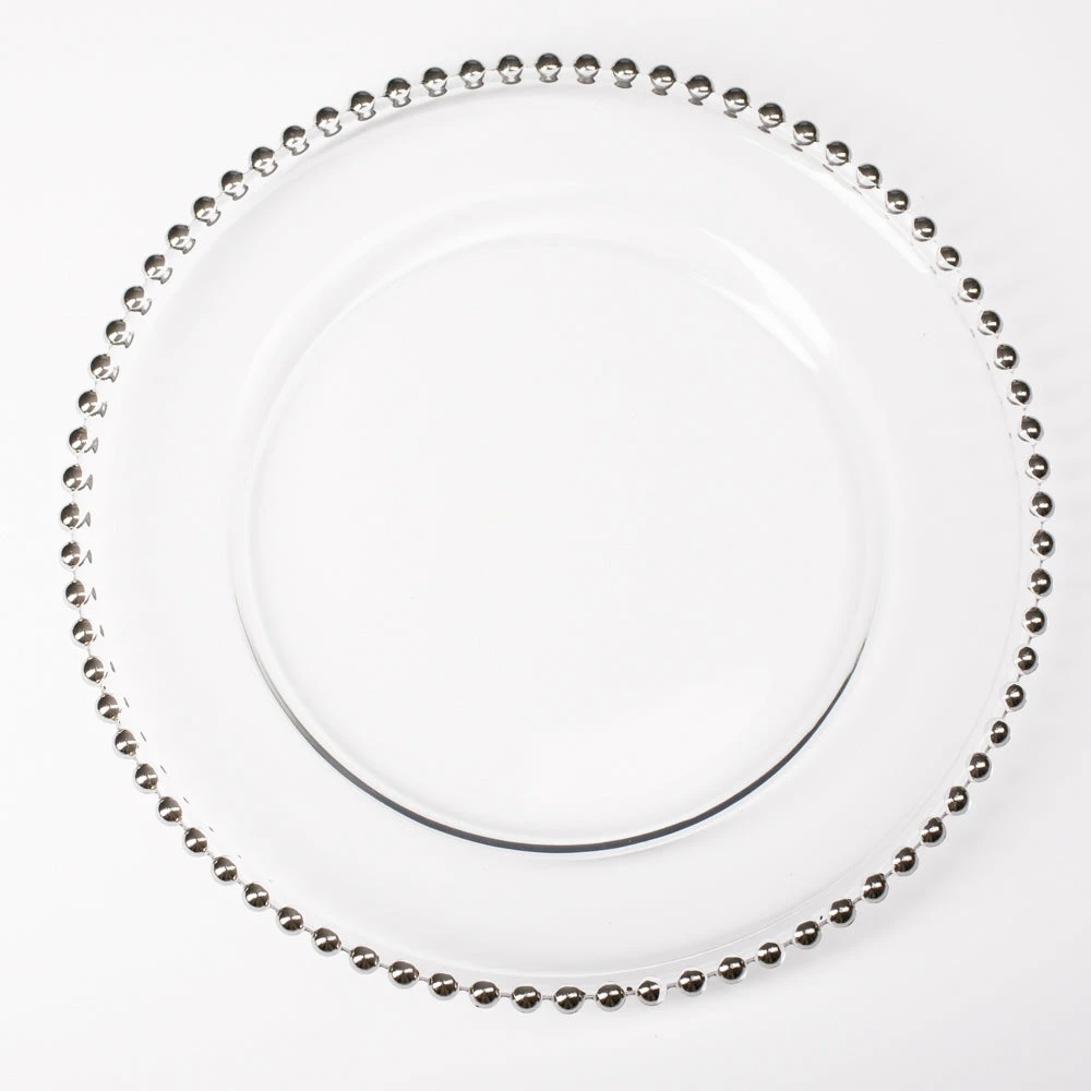 Richland 13″ Silver Beaded Glass Charger Plate Set of 12