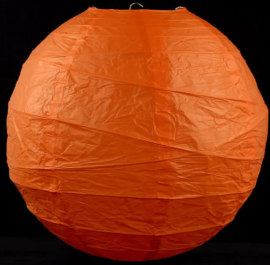 16in ORANGE Rice Paper Lanterns with Bamboo Ribbing.
