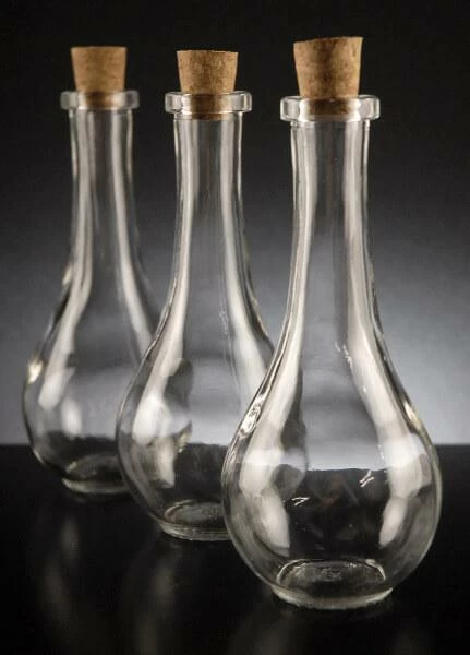 These 8oz /237ml tear drop glass bottles are a gorgeous shape, and each measure 6-3/4″ tall and 3″ wide, with a .75″ opening. This item is Flint glass with 30% recycled materials. Corks are included.
