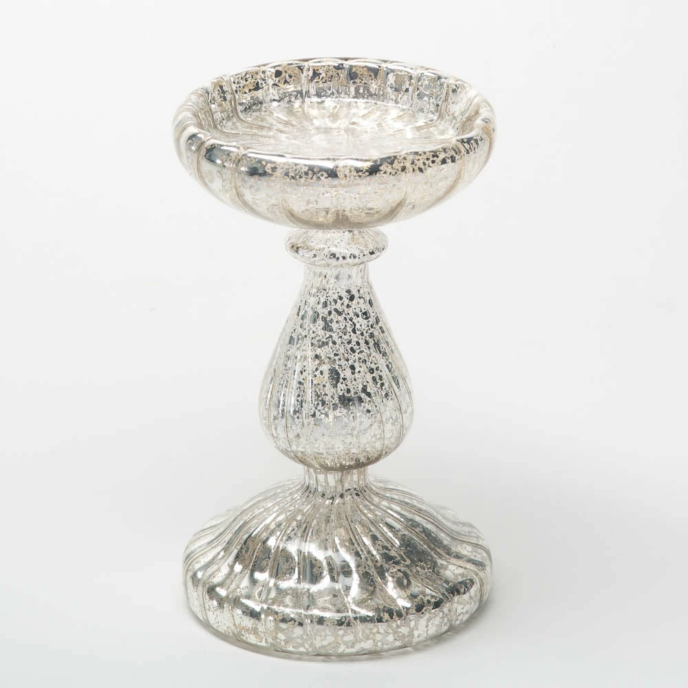 Richland 7″ Ribbed Unique Mercury Glass Pillar Candle Holder