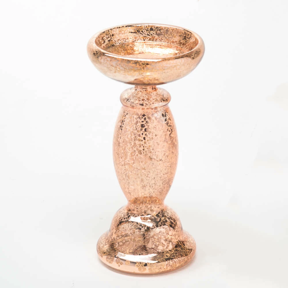 Richland 8.5” Unique Rose Gold Mercury Glass Pillar Candle Holder