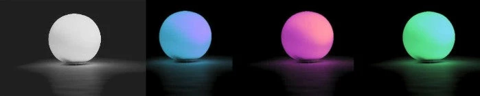 This orb has two buttons on the bottom: One button turns the orb on or off which will cause the orb to rotate through all colors. If you want a steady color, press the other button to stop its rotation–press it again to resume the rotation.