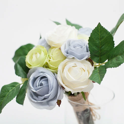This Richland silk rose bunch is simple and elegant! The combination of soft colors and vibrant green leaves brings beautiful floral to any setting! This bunch looks stunning in a clear glass vase or added to your other flowers to complete your look! The best thing about our realistic line of silk and faux flowers is the pure ease of use with absolutely no hassle! No watering, no maintenance, and you can use them time and time again to create breathtaking looks for your events or home! Any of our silk and faux flowers pair perfectly with our huge selection glass cylinder, square, flower, or unique vases! Mix and match to create a look that is uniquely yours!
