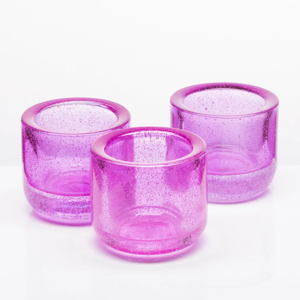 Did someone say bubbles? This beautiful candle holder adds texture and interest to your home or event. The thick bubbled glass pairs beautifully with tealight or votive candles for a glowing display. Available in clear, red, blue, green, pink and purple, this candle holder will be a beautiful addition to your décor!