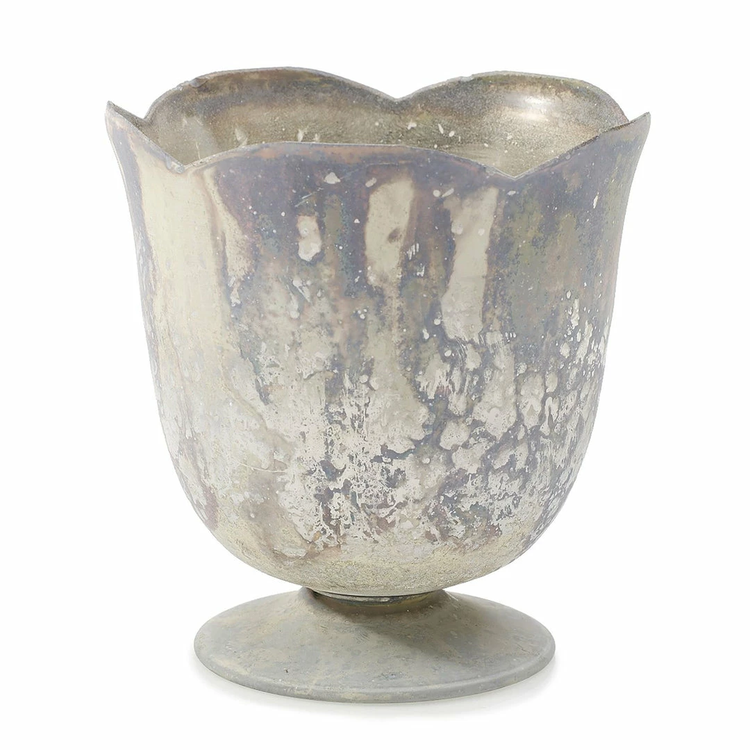 Incorporate this marbled Chelsea Vase into your home or special event for a display that exudes handmade artistry. The old-world feel glass vase features a lovely scalloped opening, elegant tapered shape, and simple pedestal. The marbled finish features various hues of whites, beiges, browns, and grays that beautifully complement vintage inspired décor. Fill this small compote with succulents and greenery; or arrange brightly colored flowers inside for a striking centerpiece.Â
