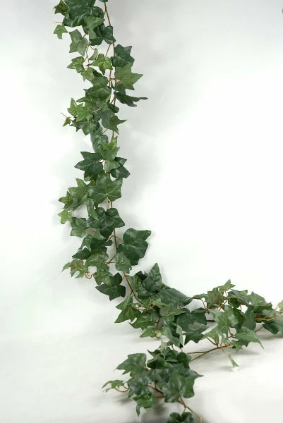 Add a brush of greenery to your home or event with this vibrant strand. The Silk Ivy Garland adds a regal touch to your decor. This garland measures 6ft long and 10in wide. It has 127 veined green leaves with plastic stems, ranging in size from 1.5in long and 1.75in wide to 4in long and 4in wide.