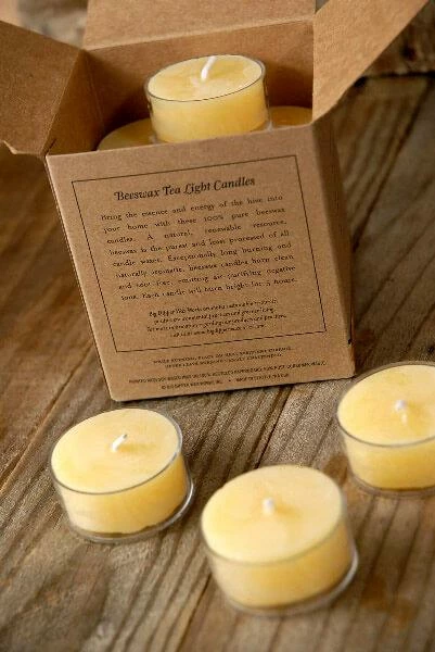 Clear Cup Beeswax Tealights (16 Pcs) Enjoy the natural, sweet, honey fragrance infused straight from the hive into the wax. These honey-hued candles will bring soft, warm light to your home, dinner party, or special gathering. The Beeswax Tealights are in polycarbonate cups, and are safe to place on shelves and tabletops, as they will not spill wax or overheat. They are disposable and easy to clean up. These natural beeswax, honey-scented candles come in packs of 16. Each candle is 1.5″ tall and 1.75″ wide. 5 hour burn time