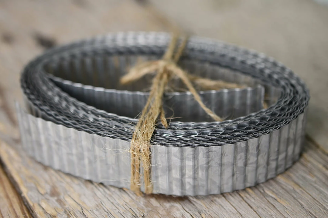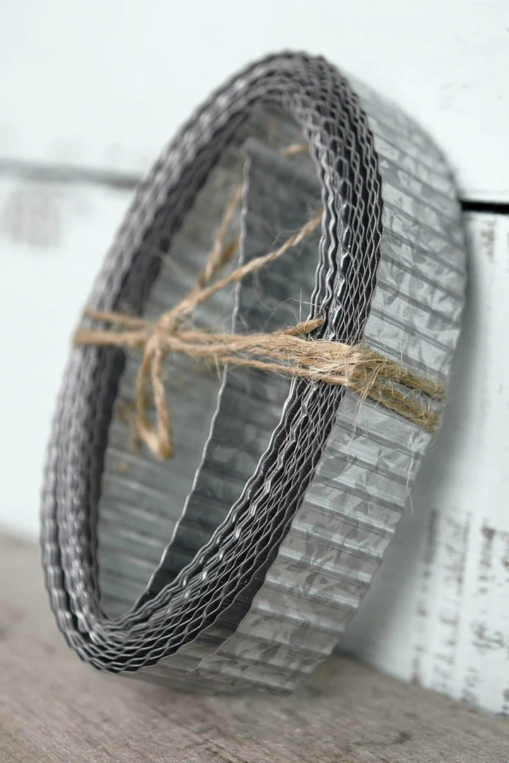 Make hearts, stars and letters with this corrugated tin ribbon. It is 1 wide with a wonderful tin patina. Make photo frames, decorate vases and wood boxes. Add a rustic touch to all your creations. Make into bows you can add to your centerpieces. 15ft x 1″ wide
