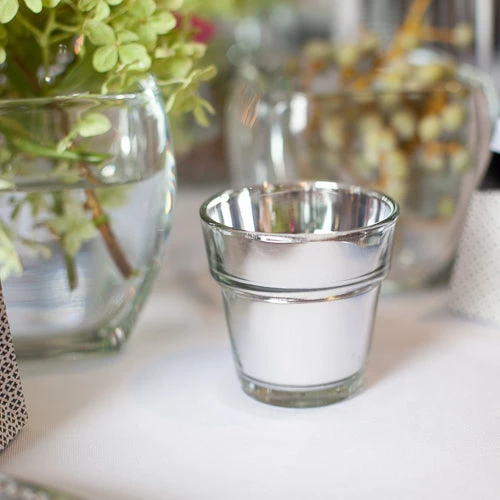 A fun twist on our traditional flowerpot holder! The mirrored version of our Flowerpot votive holder makes a statement. Gorgeously reflective when lit from the inside this holder will add the perfect touch to your home or event space. Simple, elegant, and affordable make this votive holder a great choice! You can even use these fabulous holders with our Richland Tealight candle options as well!