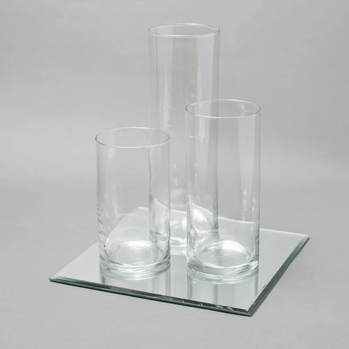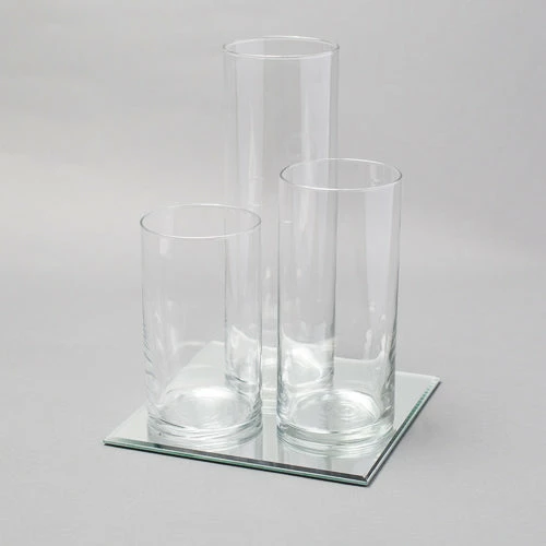 By providing you with this fabulous set of 3 Cylinders and 1 Mirror, your table centerpieces are ready-to-go! Simply add floral, candles, or other items of your choice to your Cylinder Vases. They will sit atop a beautifully reflective mirror, and in minutes achieve a look that you and your guests will love!