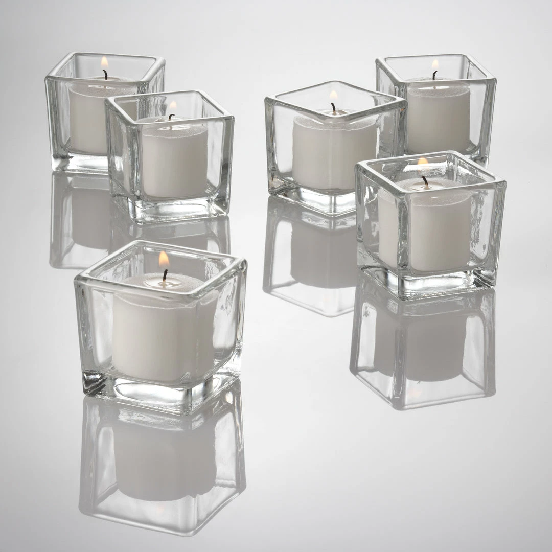 Our Eastland votive candle holders go hand in hand with our Richland votive candles! This crystal clear glass holder with a thick glass sham provide beauty in your home or event space. Simple, elegant, and affordable make this votive holder a great choice! You can even use these fabulous holders with our Richland Tealight candle options as well!