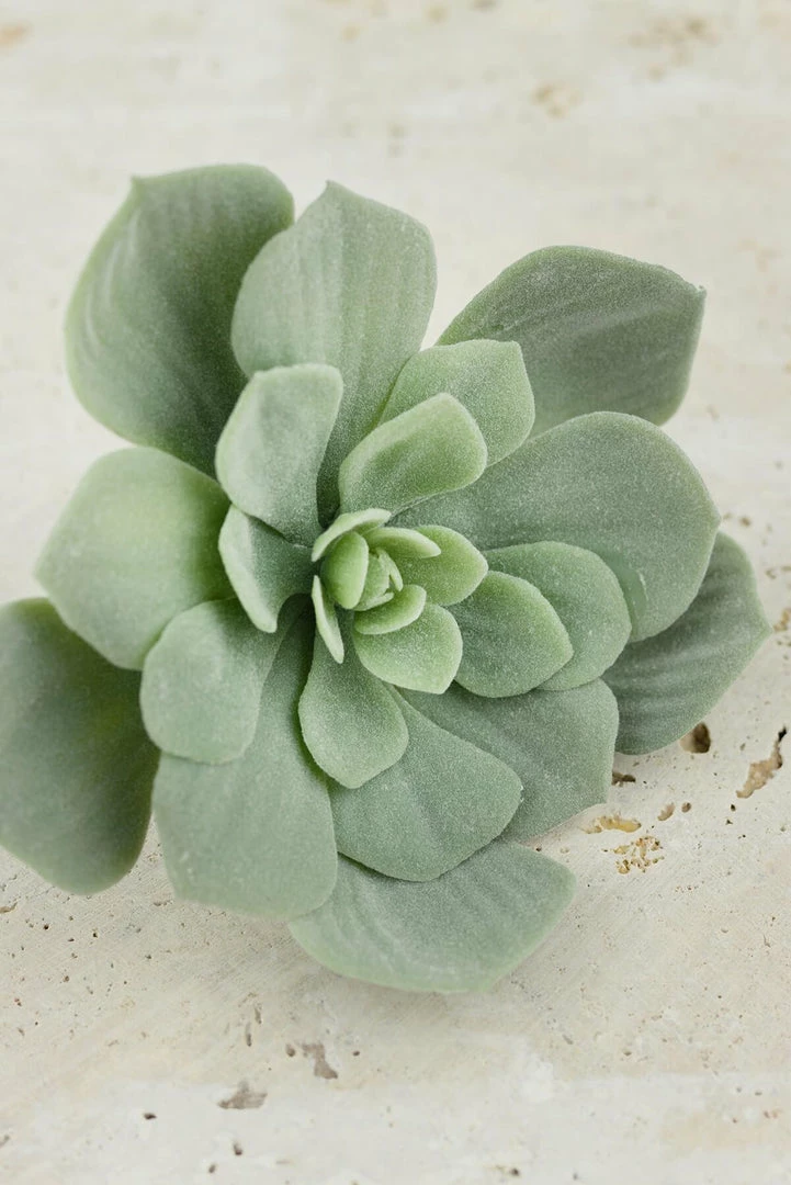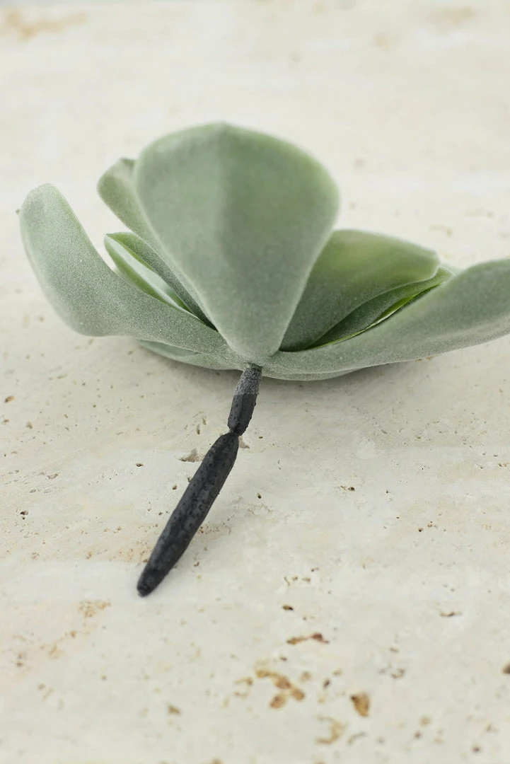 The Echeveria Pick in Frosted Green is made of plastic, yet looks remarkably like a real succulent. The pick measures 4.5″ tall by 7″ wide and looks especially lovely when used in a bridal bouquet or southwest inspired centerpiece. With its natural touch and feel, this Echeveria Pick will bring a soft, desert touch to your home or party.