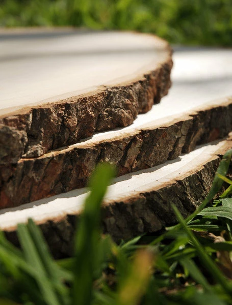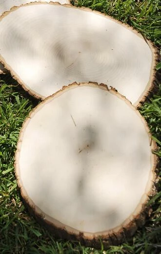 This natural wood tree slice with bark is kiln dried and come with a very smooth finish. The rounds are not chemically treated in any way. Each tree slice is sanded on both sides and measures 5/8″ thick, and 11-18in wide. Because the tree slice is a natural item, each round is unique and may vary in size slightly. All slices are at least 11″ wide at the narrowest point.