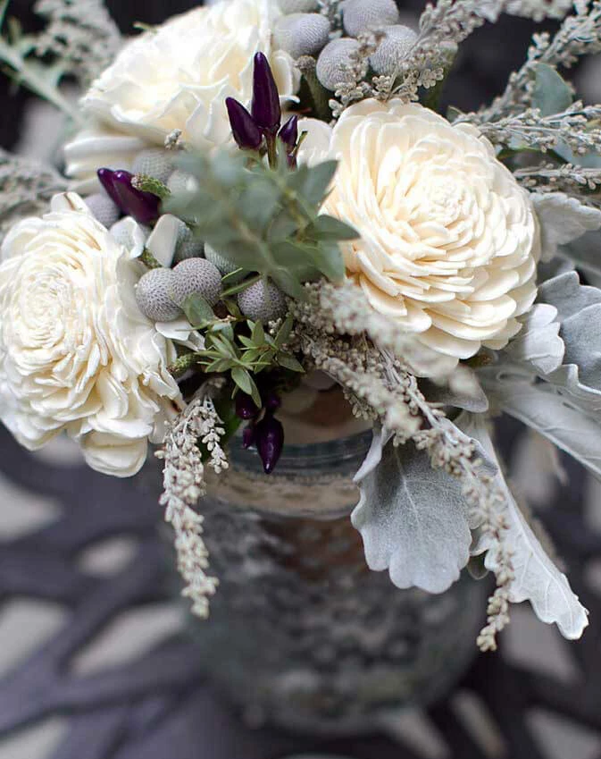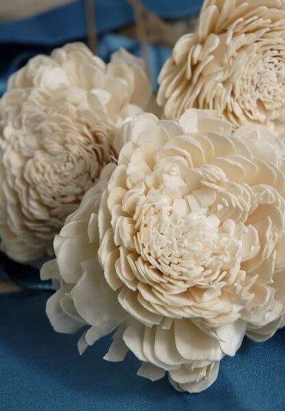 Each is on a wire and measures 22.5in tall. Emulating the romantic beauty of roses, these Sola Flowers on Wired Stems add dazzling, natural accents to a classically decorated wedding reception. These flowers are composed of tapioca wood peel, and can be strung together or used as floating flowers. These flowers come in sets of 3, and each flower is 2.5 wide and attached to a wire stem wrapped in brown floral wrap. The wire is 3/32″ thick and 16″ long. A bouquet of the 3 blossoms measures 22.5″ tall and 5.5″ wide