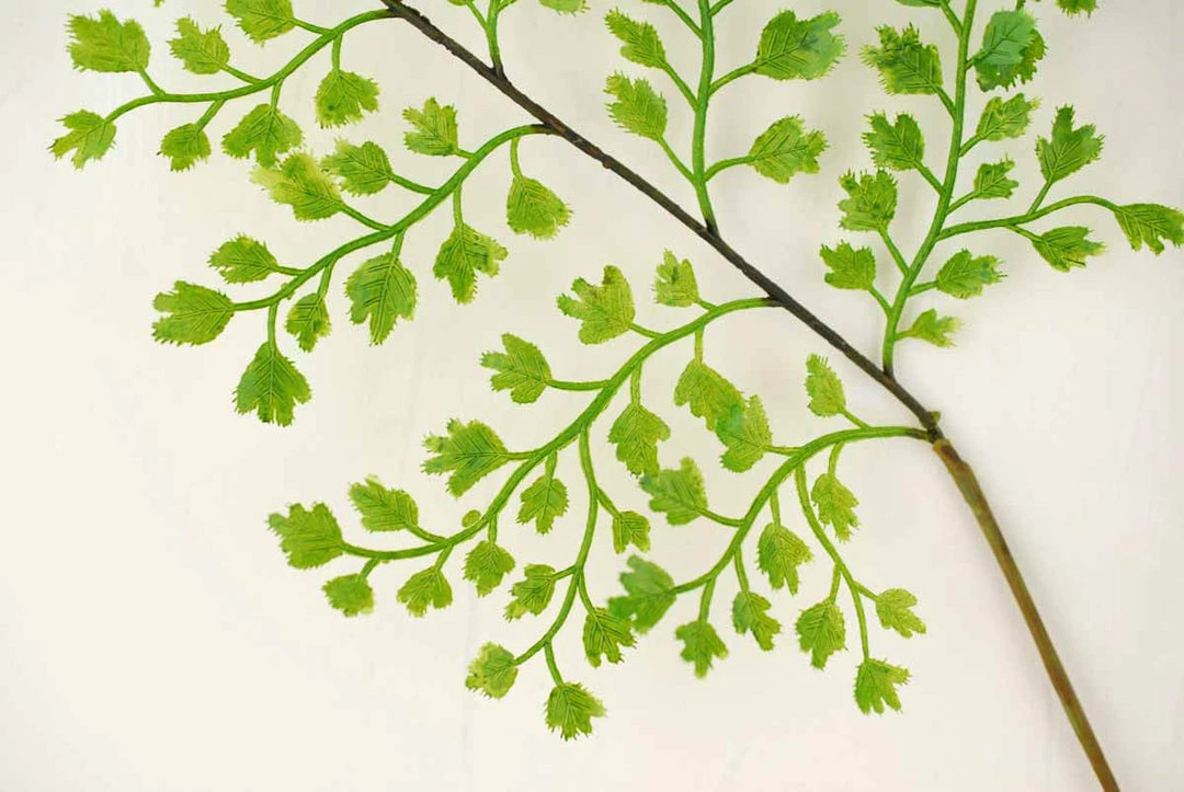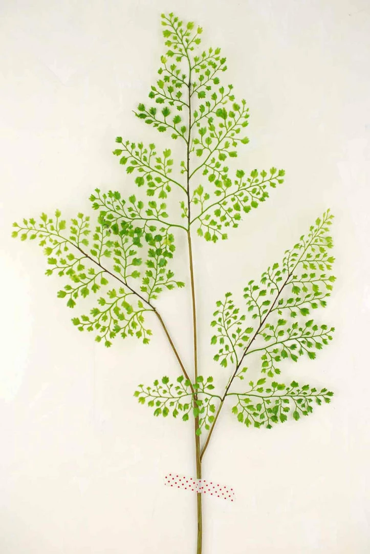 Give your centerpiece arrangements a natural looking accent with this Maidenhair Fern Spray. This artificial fern has fully wired stems, allowing for realistic shaping. The fern stands 34 tall and 8 wide when the branches are not fully spread out.