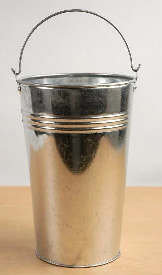 Make your floral arrangements gleam in this this galvanized French flower bucket. They make bright centerpieces. Each bucket measures 8.5″ tall and features a metal handle. It has an opening of 5.5″ and a base of 4″.