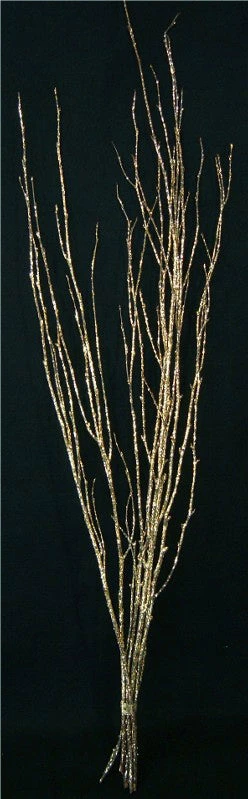 4-5 branches per order. These natural branches are coated in sparkling splendor, and will bring a glamorous touch to your party decor. The Gold Birch Branches have slender, reaching silhouettes, and electrify their surroundings with radiant glitter. These branches come in bunches of 4-5, and measure 3-4ft tall.