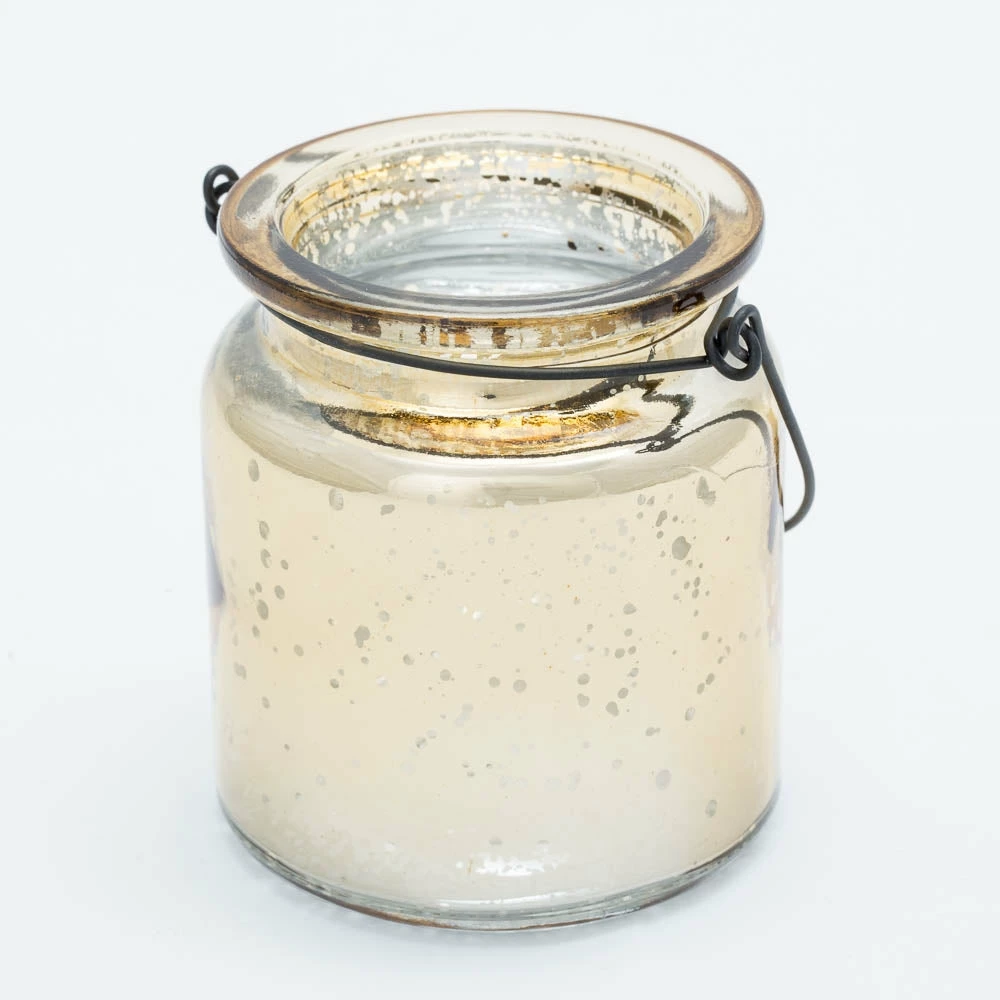 These fabulous hanging mercury glass holders can be just the right added touch for your home or event! These thick glass vessels features a dappled light gold metallic finish, elegant shape, and brushed black metal handle. When using with any of our Richland Tealight or Votive Candles (not included), the shimmer and glow through the speckled finish will brighten any spot! Perfect for weddings, events, and home décor!
