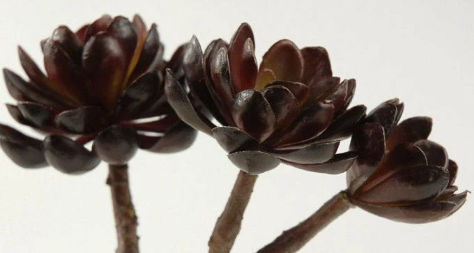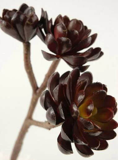With 3 tendrils of blossoming beauty, this natural touch Hen & Chicks Burgundy Stem succulent will bring fresh detail to your home or office. The artificial plant will compliment rustic and earth-toned surroundings. This succulent is 10in tall, and is on one wired stem. The 3 buds vary in size; 2″-3″ diameter. The tendrils are a rubber-like material. Use singly in a narrow vessel; or with other items to create interesting arrangements. (1) Stem included.