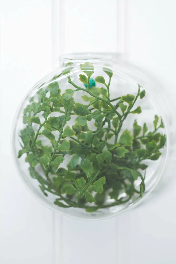 Hollis makes us HAPPY! The simple round flat shape of this glass wall vase will fit into any space. With a small hole on the back side of the vase, hanging these on your walls is a breeze. Amazing & Awesome! Hanging Wall Vases will instantly turn a blank wall into a masterpiece. Simply add your own dash of style and color to these fab little vases. Unlimited possibilities in decorating home or event spaces abound with the four style choices! Fill with any of our wonderful faux flowers or choose fresh blooms and watch the transformation of your space! Choose from the Hallie, Haven, Hollis, or Hoyt styles. Mix and match to create an eye catching wall display or use all the same shape to complete your design. Perfect for home and event décor.