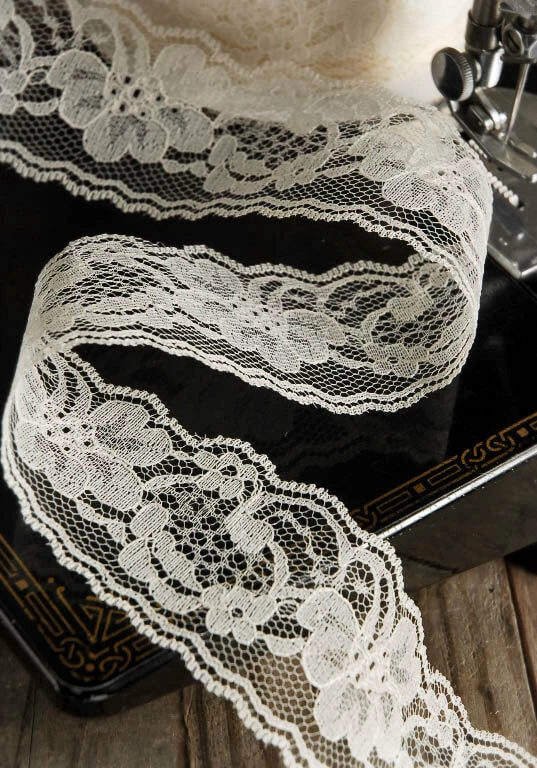 This lavish lace ribbon is a lovely and versatile decoration. Use the Lace Ribbon in Ivory to create beautifully wrapped gifts, adorn invitations and menus, or to tie around the neck of a vase full of fresh flowers. This ribbon can also be used to suspend ornaments, lanterns, or even vases at indoor or outdoor events. This lace is 2″ wide and 25 yards long.