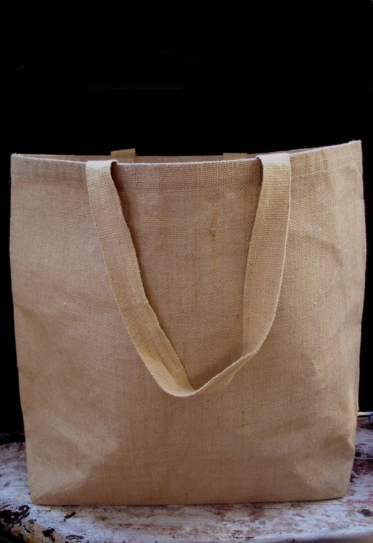 Large 20 x 14 Burlap Bag with cotton handles Natural burlap. Makes a great beach bag.