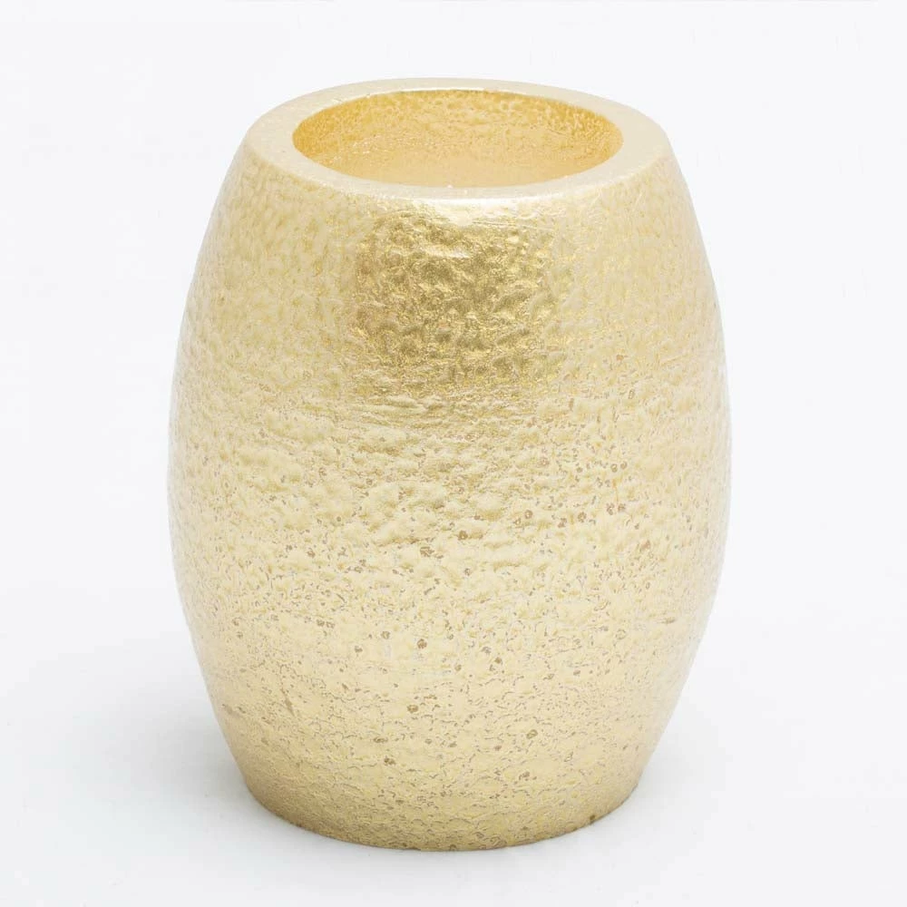 Solid Gold! This beautiful gold LED metallic candle is a stunner. The real wax outer shell and textured hammered golden metallic finish make this hassle free LED candle option the perfect addition to any space. The flickering amber glow bounces off the metallic finish with just the right touch of ambiance. Create a gorgeous glow by placing multiple candles together for a golden centerpiece. Check out our line of metallic gold and silver products to complete your very own amazing look! Also offered in a silver metallic.