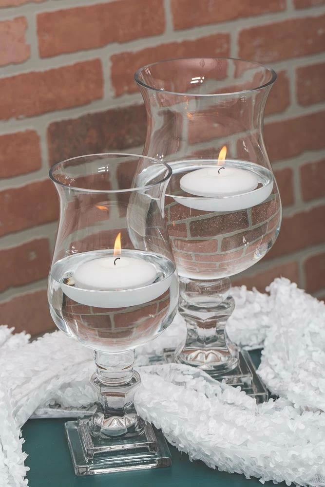 The depth of the hurricane top is approximately 8“. This holder pairs perfectly with our 3″ Richland Floating Candles (not included). Also offered in a small size separately or in sets to create stunning tiered centerpieces.Â