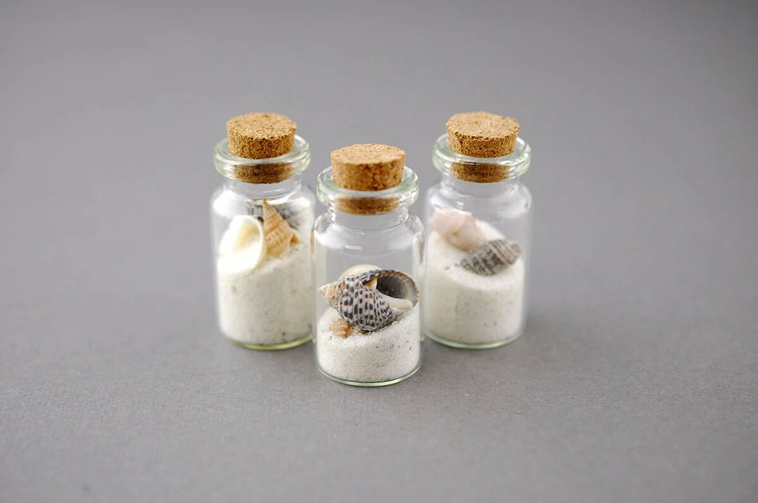 Create captivating gifts with these Mini Glass Bottles. These little glass vials come as a pack of 12 and make a unique containers for favors in place of the usual bags or boxes. The bottles measure 1.55″ tall, and are 7/8″ wide. Great for beach weddings, or for filling with little charms or decorative herbs and botanicals, these tiny bottles can be used in myriad ways.