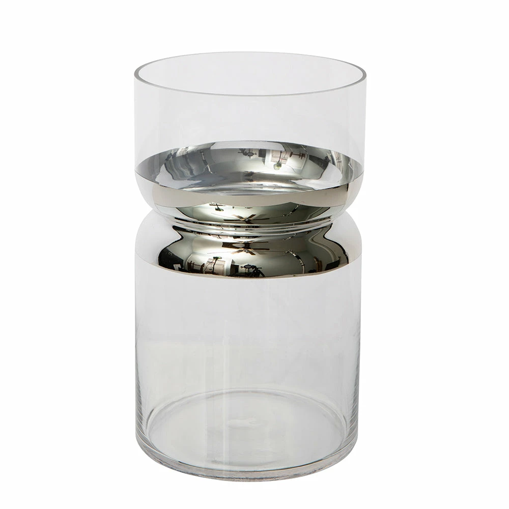 Marvelous Monroe! This mid-century inspired vase will bring back the glamour of a time gone by. The clear thick quality glass with metallic silver accent and elegant shape is perfect to dress up your mantel, table, or anywhere you can find! Perfect for fresh flowers, or on its own, the Monroe vase is sure to impress. Create glowing displays by including a fuel cell candle inside and surrounding it with colored sand, vase fillers, gems or stones.