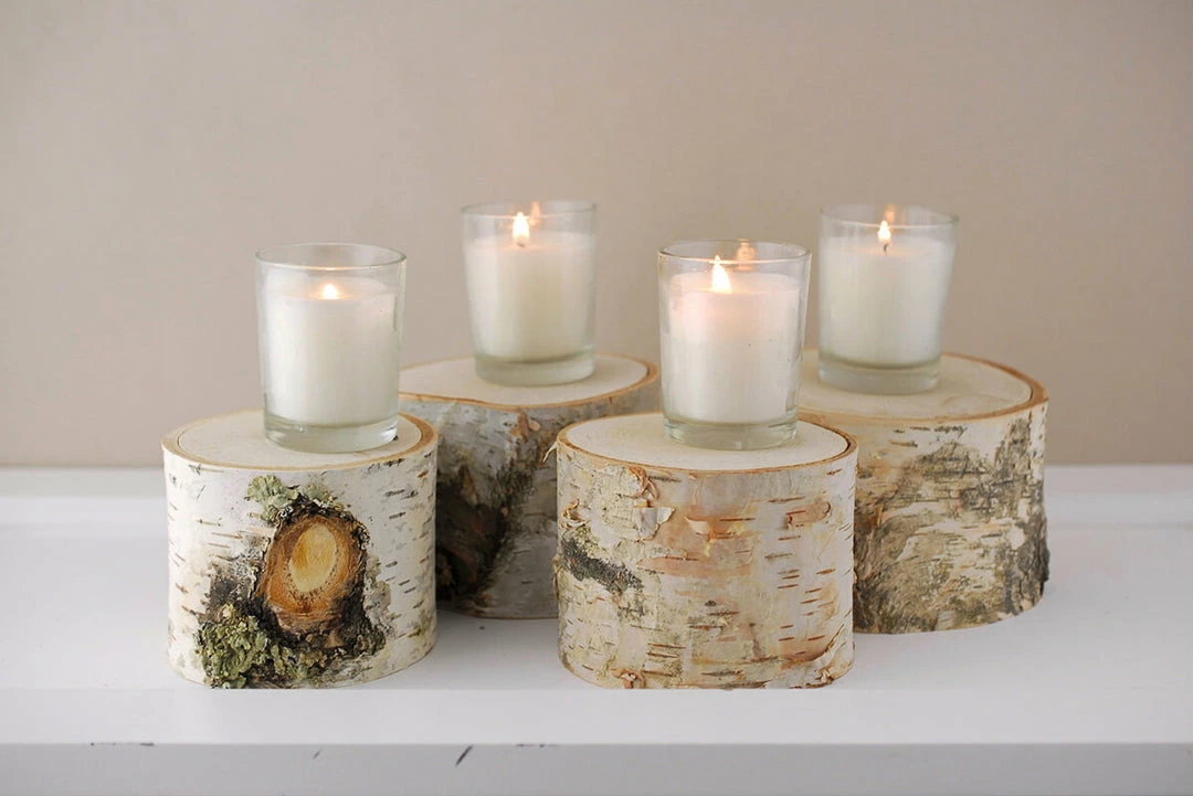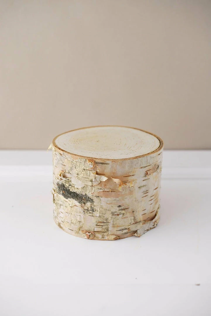 Elevate your candles with this Birch Pillar! The 3″ tall log is made of natural birch and is especially suited to adding height to centerpiece displays. Bring a cozy outdoor ambiance to your home with this thick birch slice by incorporating it into a coffee table arrangement. 1 Birch Pillar Included. Candles sold separately.Â