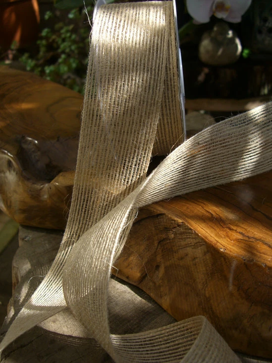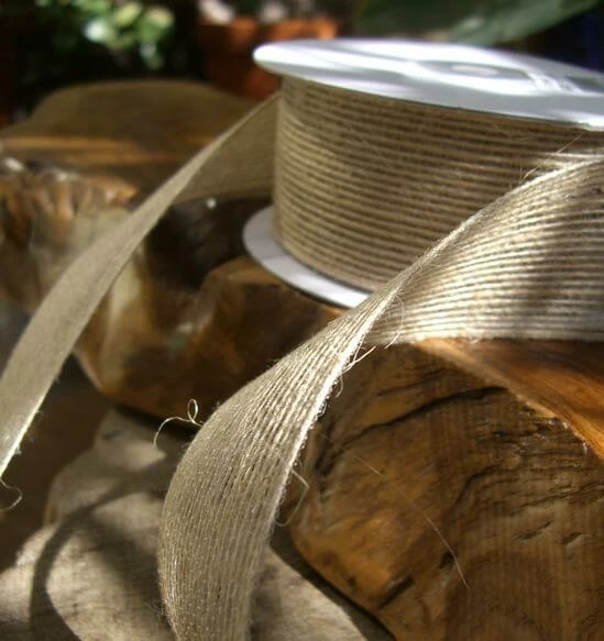 Add a rustic edge to your tablecloths, floral arrangements, or home decor with this textured band. The Jute Ribbon brings a countryside feel to your outdoor wedding. This jute ribbon is 10 yards long and 1.5in wide.