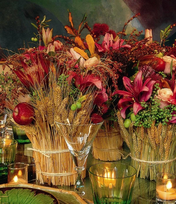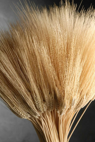 This gentle bunch of gold-spun wheat is the perfect addition to rustic decor, or a fall-themed party. Place the Wheat Triticum Stack in a clay pot or vase to display its bursting, yellow wisps. Or, arrange in a bouquet of fall flowers and sprigs to celebrate the harvest season. This bunch is 20in tall and approximately 8in wide, and is tied with raffia. Each bunch contains 130-150 stalks of wheat.