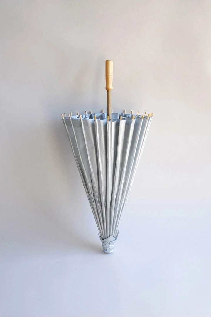 Enjoy the warmth of the sun while still keeping cool beneath this Paper Parasol in silver! This glamorous umbrella is made of one-sided metallic silver paper and has a smooth bamboo handle. The perfect addition to any outdoor gathering, this parasol is especially suited to beach weddings with a little sparkle and shine! The silver parasol measures 32″ in diameter when opened and makes a functional favor your guests can use to shade themselves all summer long.