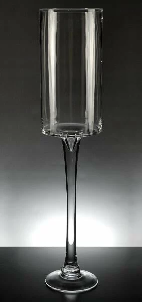 Use the Tall Pedestal Vase Thick Glass 24 Inch to hold floating candles or flowers. This elegant clear glass piece stands 24in tall, with a 5in opening, and a 4.75in base. The stem is 12.5in tall and 7/8in thick. Very sturdy thick glass. A perfect statement piece for weddings, events, and the home!Â