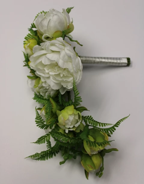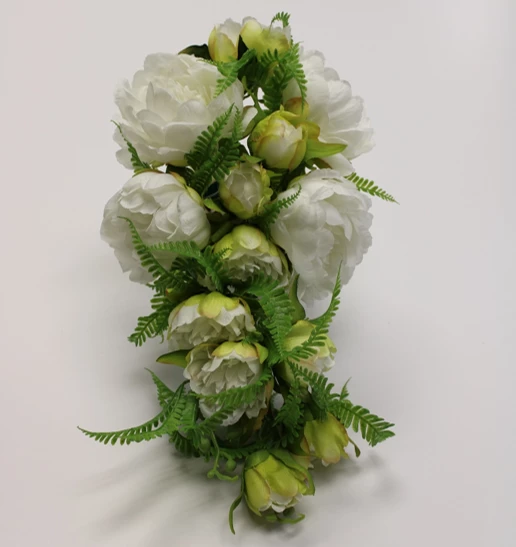 With beautiful white shades, the blooms of this white cascading Bouquet have a vibrant life-like look. The timeless beauty of the white peonies will lend charm and elegance to a wide variety of decorations or events.Â
