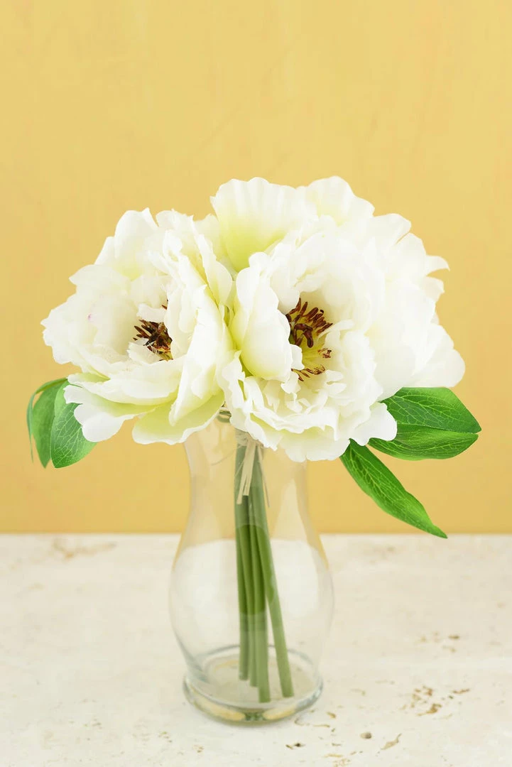Richland Peony Silk Bouquet In White – 10″ Tall Seasonal Parties