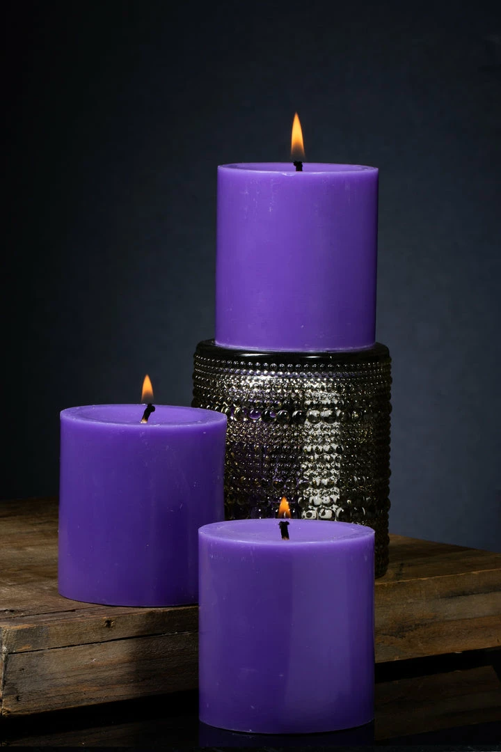 • (24) Richland® 3″x3″ Pillar Candles Lavender