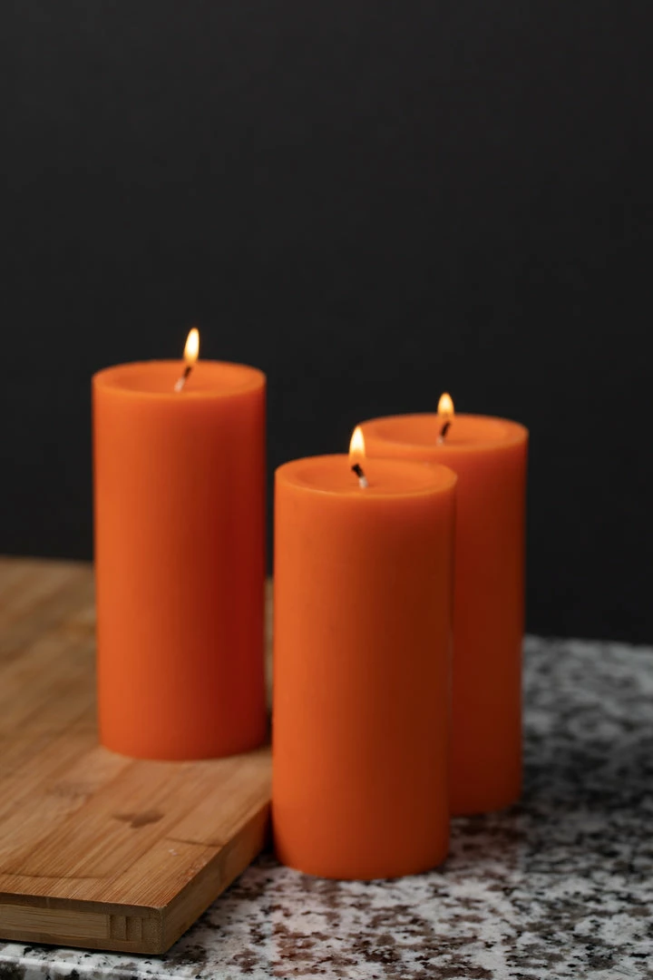 • (24) Richland® 3″x6″ Pillar Candles Orange