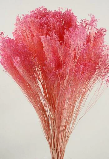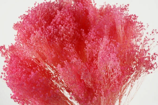Pink Baby’s Breath Bundle 18″ tall. Spruce up your corsages and centerpieces with this colorful pink bundle of dried and preserved pink gypsophilia. Add sprigs of this baby’s breath to bouquets of roses, daisies, mums, or lilies for a beatiful pop of color. The bundle is approximately 8″-10″ wide x 16″-18″ tall. The Natural Gypsophilia is dyed pink with food grade dyes.Â