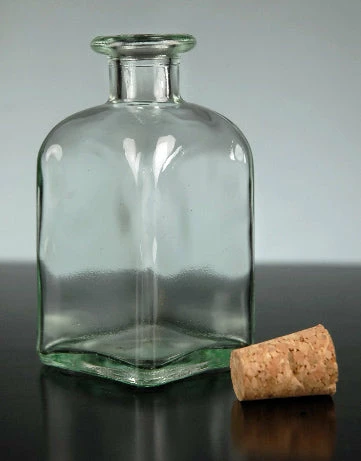 The Roma Glass Rectangle Bottle is an excellent vessel for your homemade hand sanitizer, decorative sands, or as a party favor! This thick glass 3.4 oz bottle comes with a cork top. It is made of imported glass, giving it a unique texture.Â