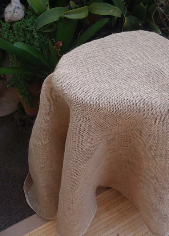 For that shabby chic or rustic look, use the 60in round hemmed burlap tablecloth. It is made of excellent quality 100% Jute burlap with a natural color, tight weave, and cotton-hemmed edge. Use steam iron to remove the folds.