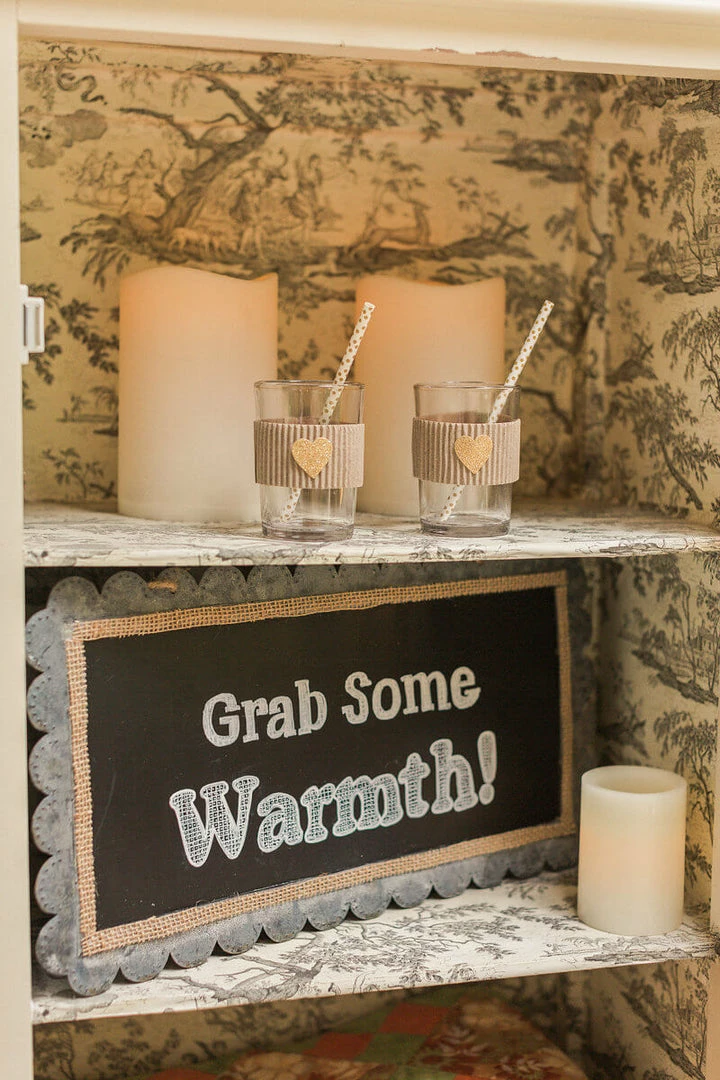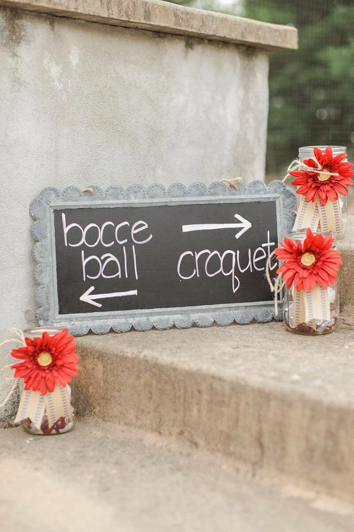 For a practical, yet creative sign at your events, use the scallop edge hanging chalkboard. With the scalloped zinc border it measures 19′ long and 10′ tall. The chalkboard surface is 17′ long and 7-1/2′ tall. It features a 1/4′ rope for hanging that gives it a lovely country look.